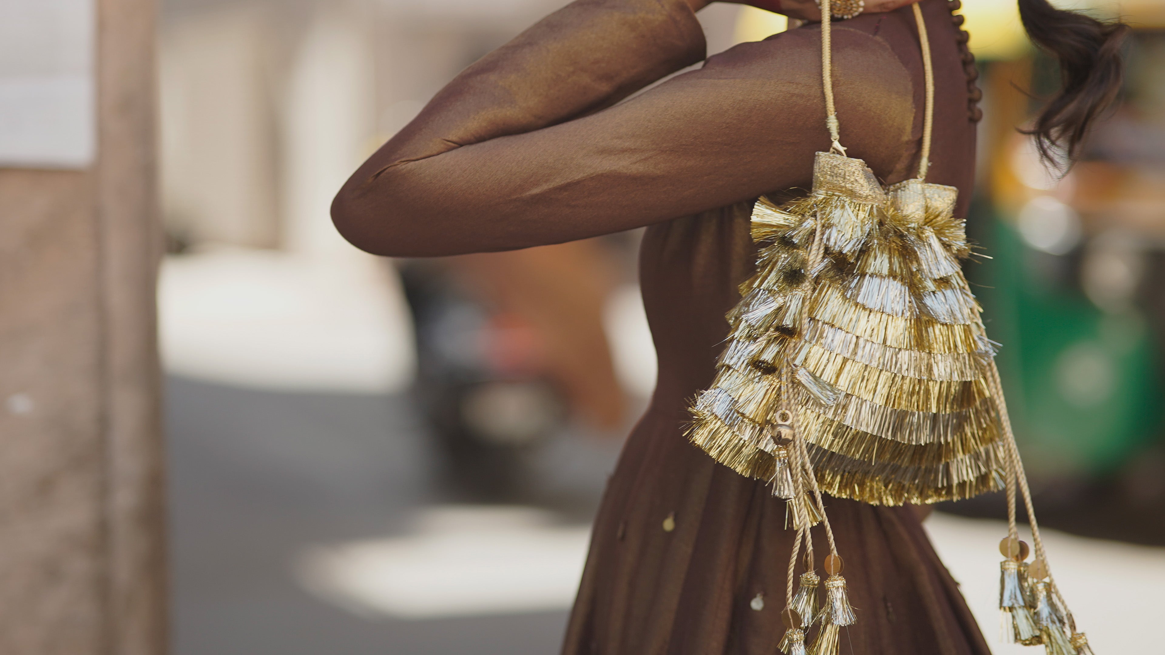 Handcrafted potlis featuring intricate gold, silver, and rose-gold gota work. Finished with delicate tassels, blending heritage craftsmanship with festive elegance.
