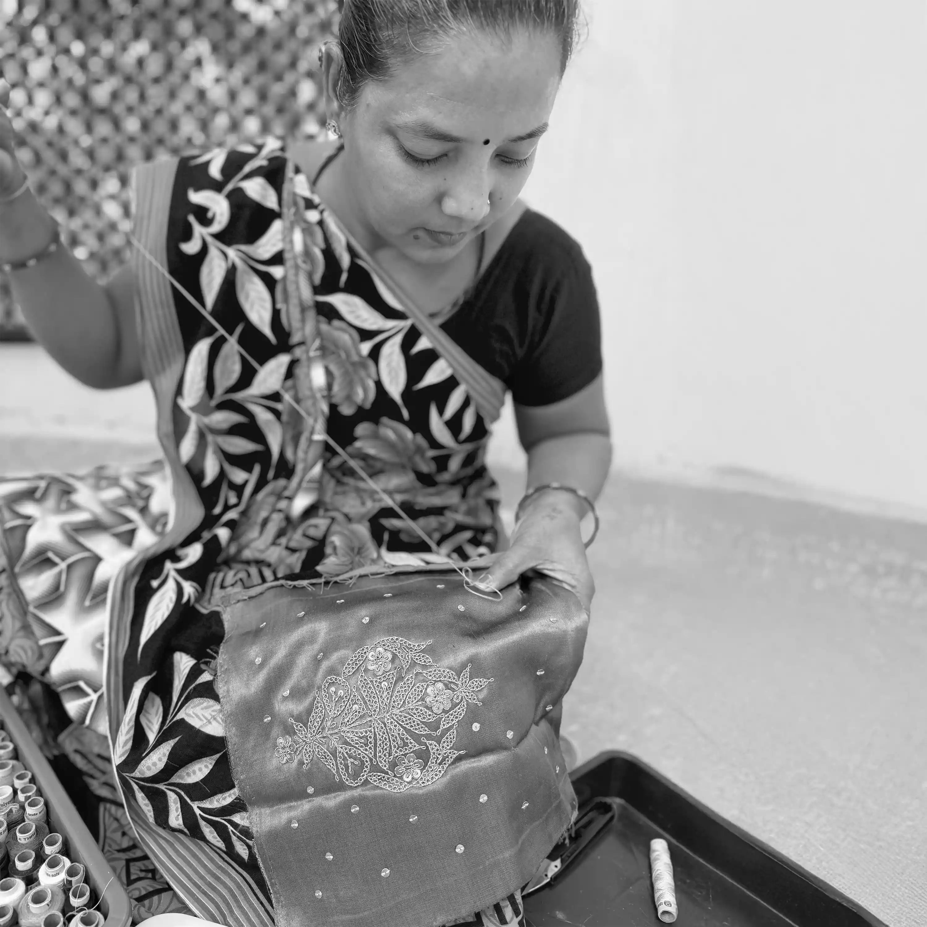House of Turquoise did not begin as an All-Women Workspace by Design. It became one Organically. It started with two Women working alongside the Founder, Rooted in Skills Indian Women have carried for Generations. Historically, Embroidery and Textile work lived within Homes, passed down quietly and rarely recognised as Formal Labour. The Brand simply gave this Inherited Knowledge a Visible, Valued Space.
